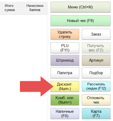 1. Нажимаем кнопку "Дисконт."