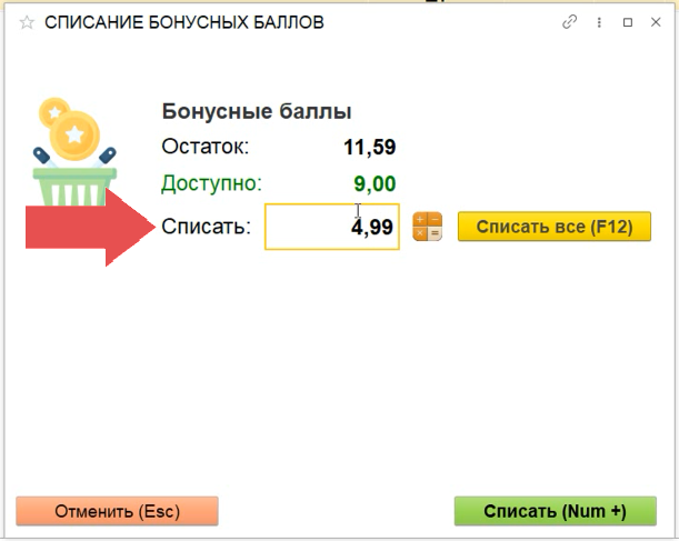 1. Отсканировать бонусную карту через считыватель.