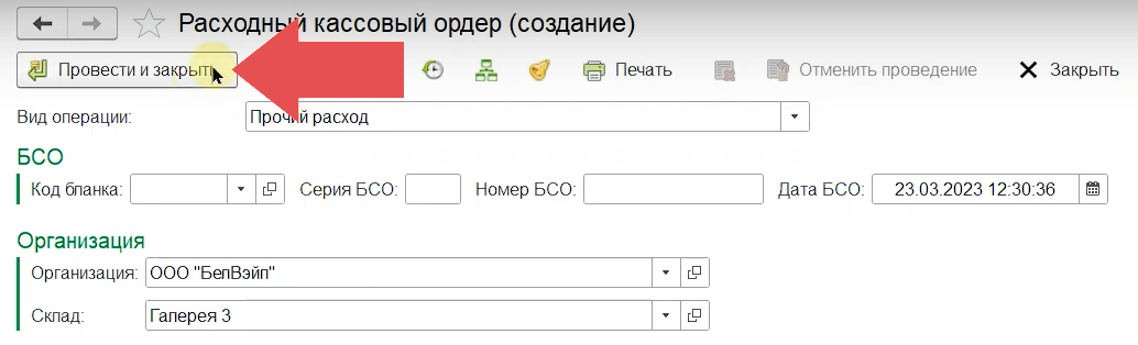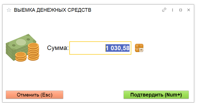 8. Вводим сумму на которую был создан РКО, нажимаем "Подтвердить"
