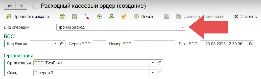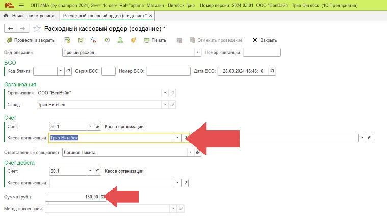 4. Вводим сумму и указываем в кассе организации название своего магазина.