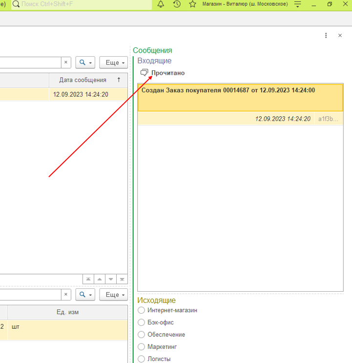 2. Во входящих сообщениях нажимаем «Прочитано»