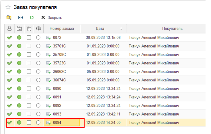 6. Выбираем нужный нам заказ по номеру