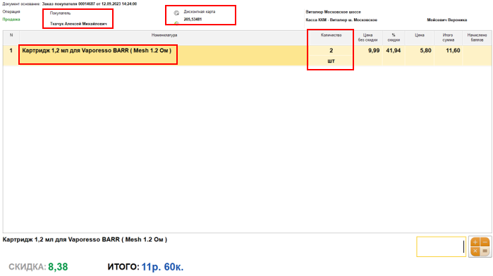 8. Сравниваем данные Клиента, наименование товара и его количество, которое он попросил забронировать
