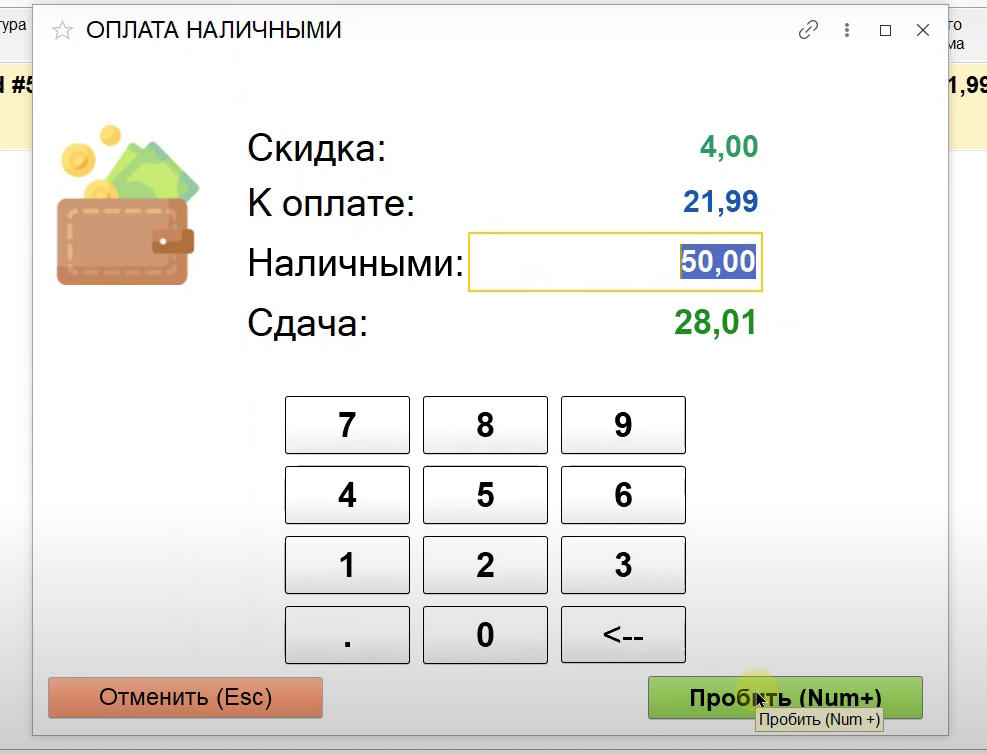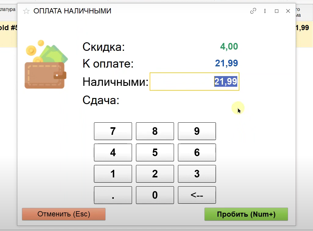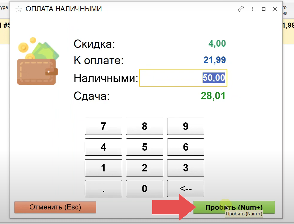 4. Нажимаем Enter на клавиатуре, чтобы рассчитать сумму сдачи