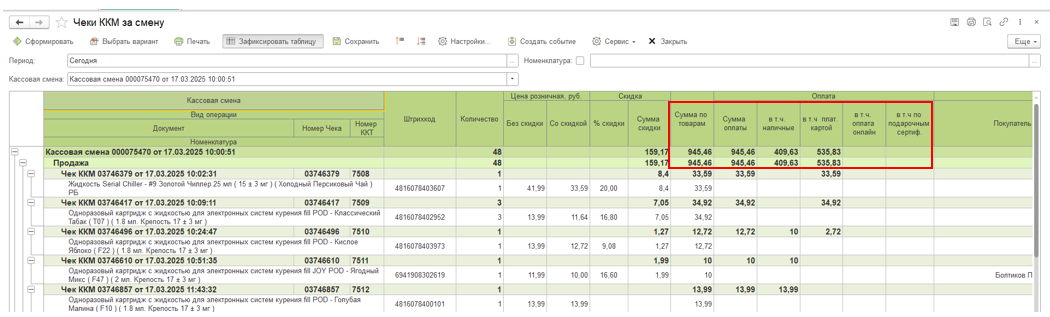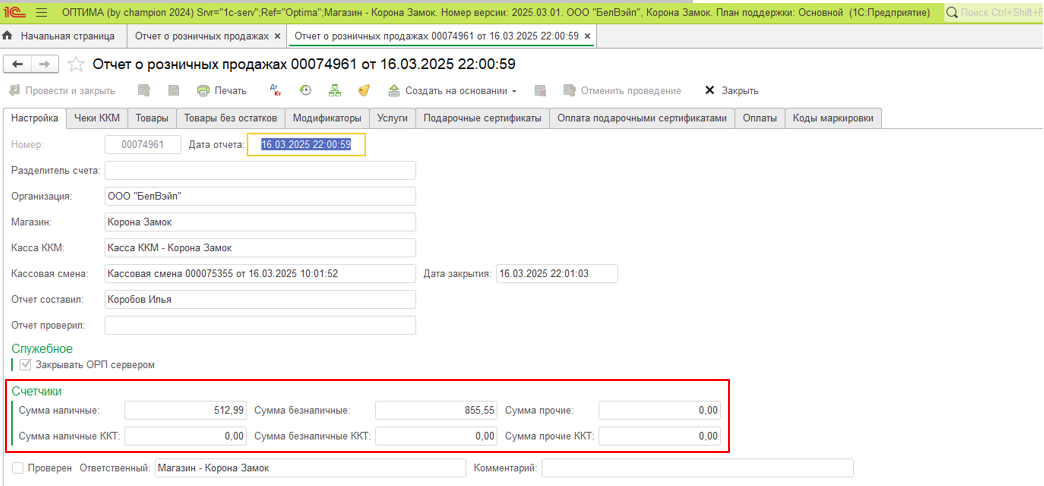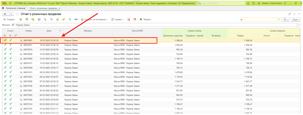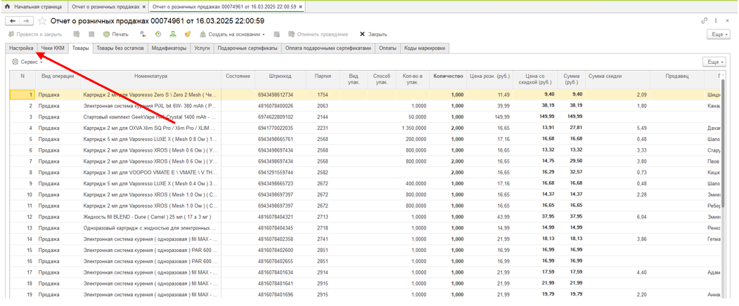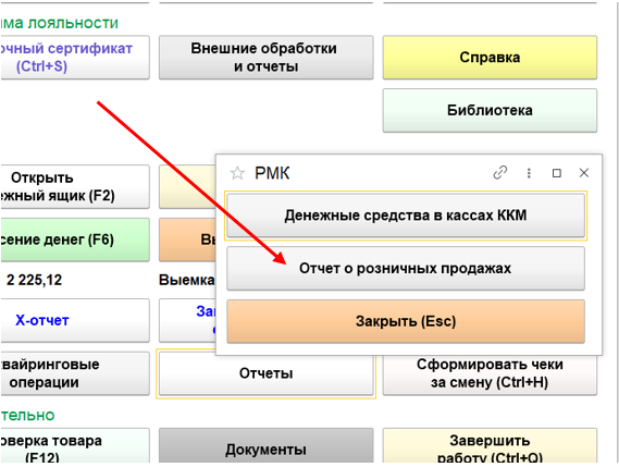 3. В окне РМК выбираем “Отчет о розничных продажах”