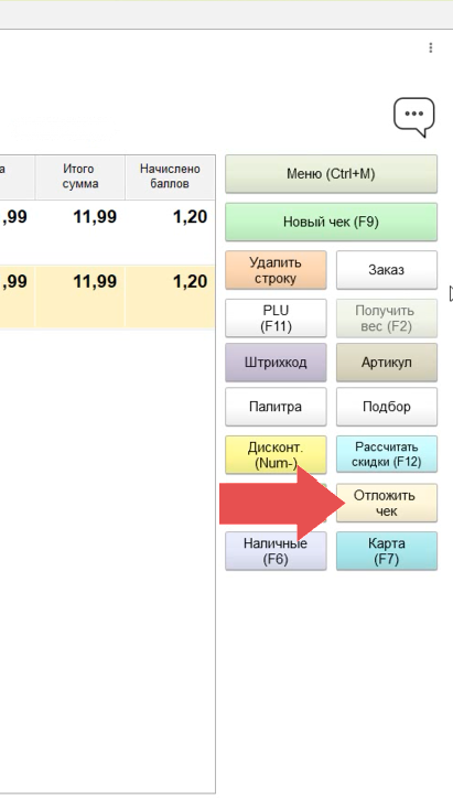 2. Нажимаем кнопку "Отложить чек"