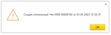 3. Видим сообщение с номером и временем созданного отложенного чека, нажимаем кнопку "ОК".