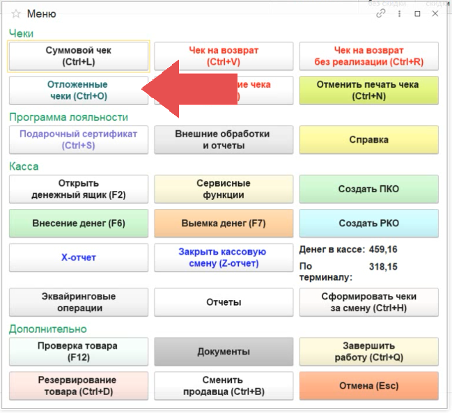 2. Нажимаем кнопку "Отложенные чеки"