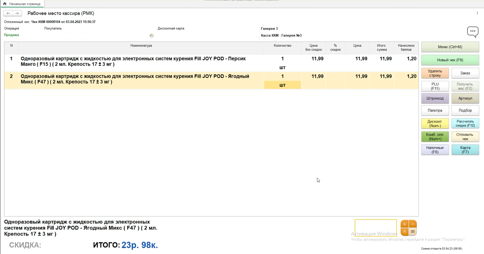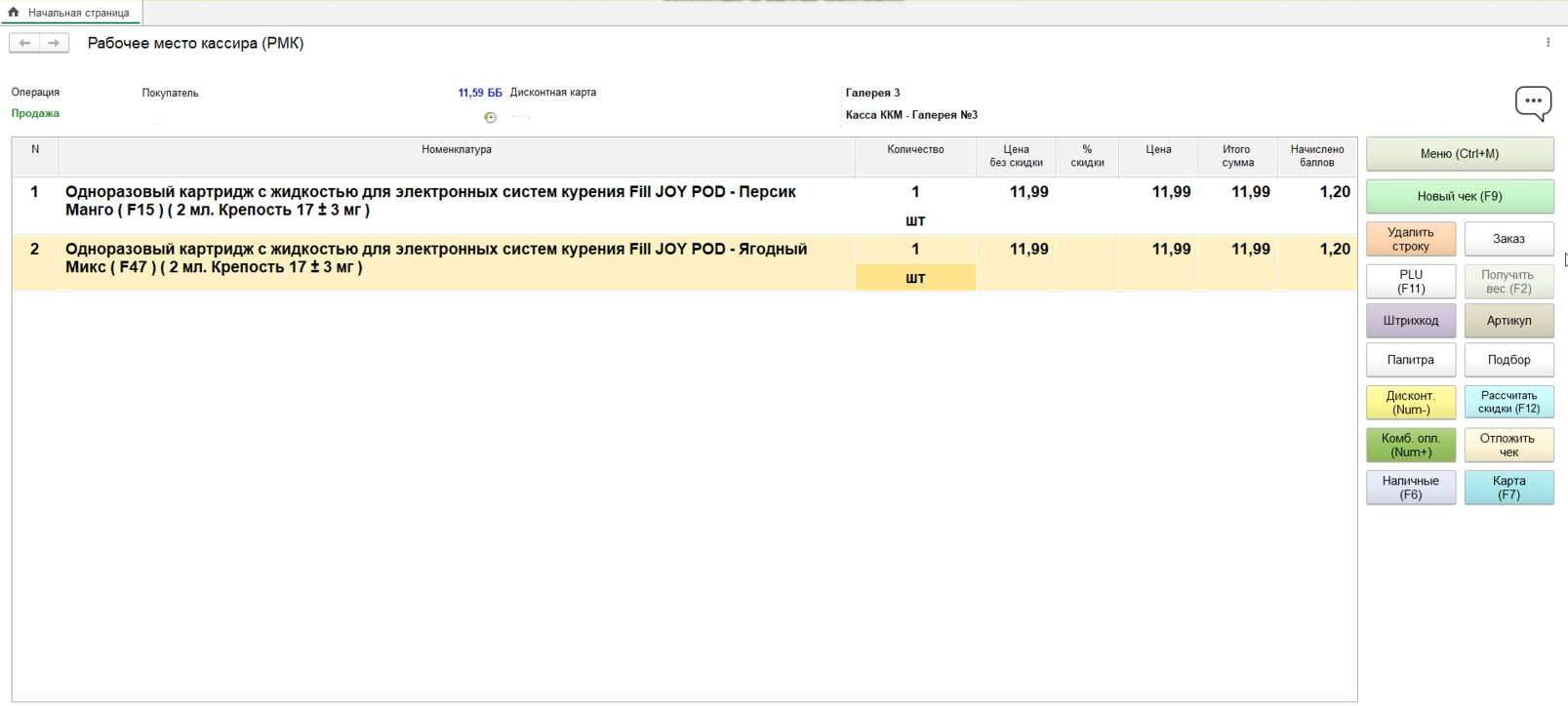 1. Добавляем в чек любое кол-во номенклатур