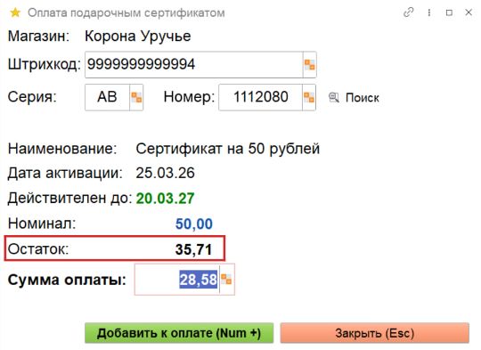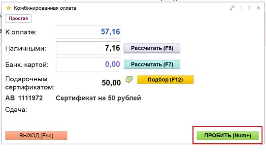 Например: Сумма вышла 49,99, а номинал сертификата 50 р, значит в графу "Сумма оплаты" вводим 49,99