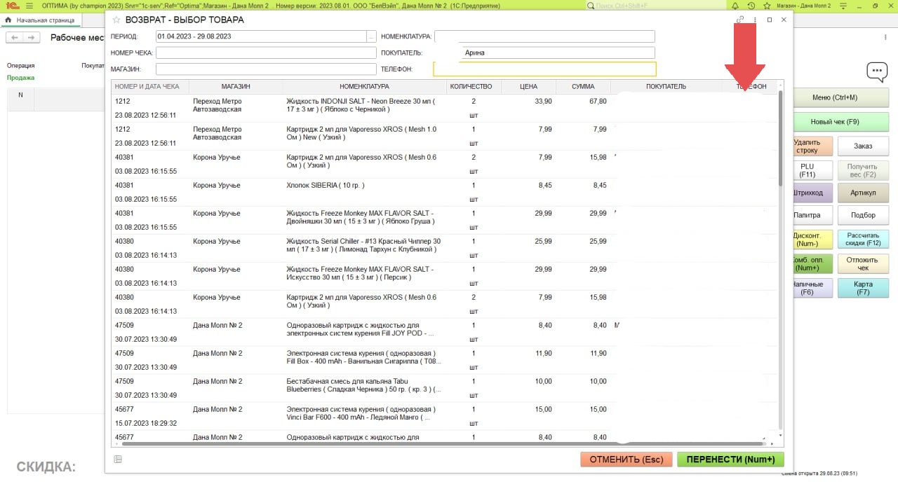 5. Номер телефона отобразится справа от ФИО