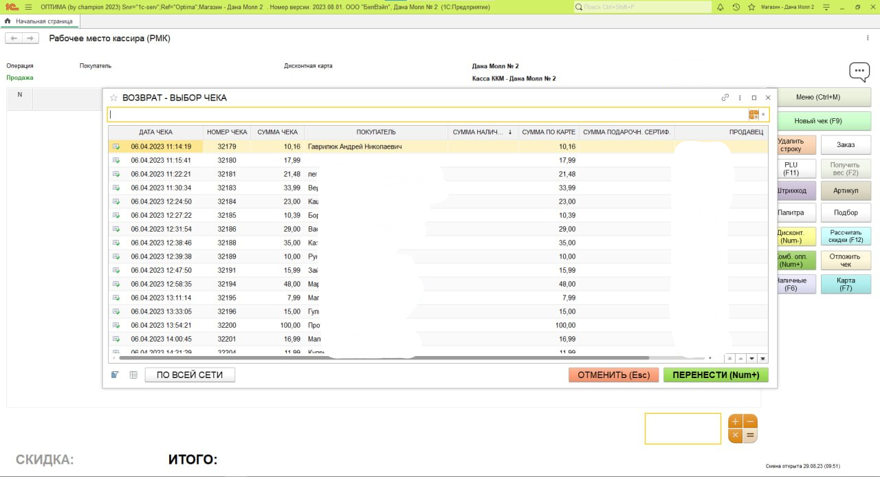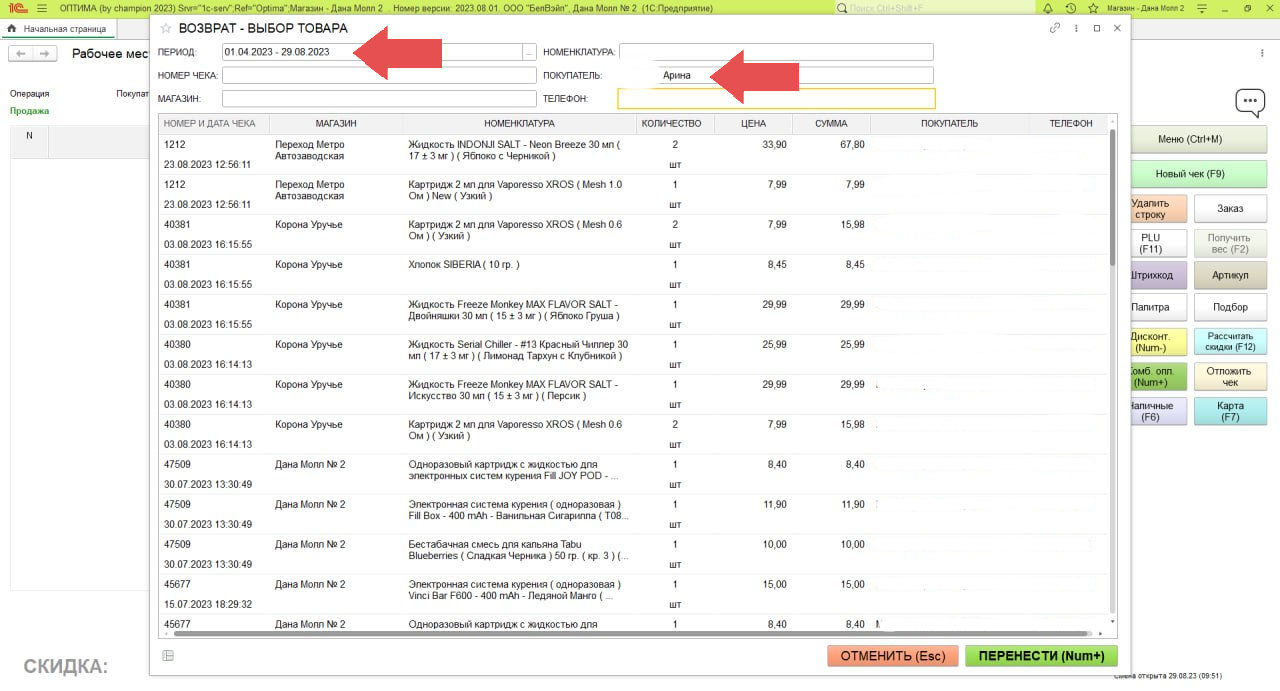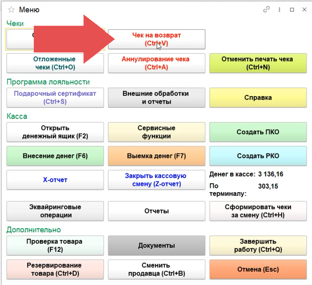 2. Выбираем "ЧЕК НА ВОЗВРАТ"