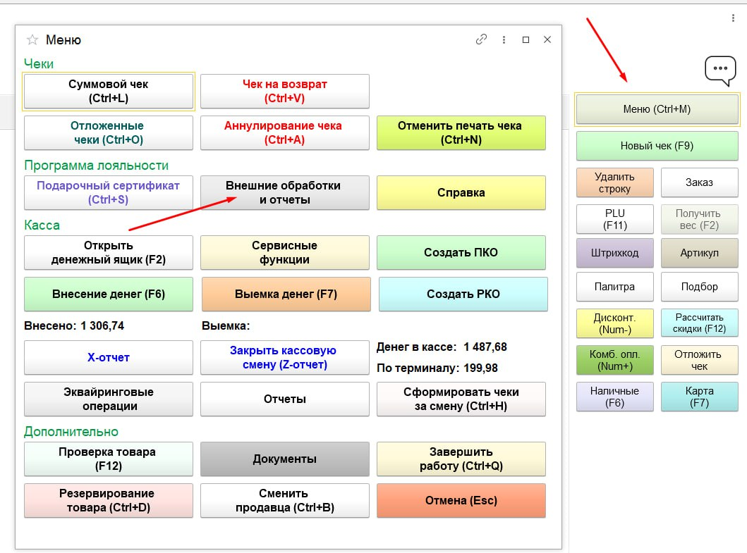 - Через меню открыть внешние обработки и отчеты