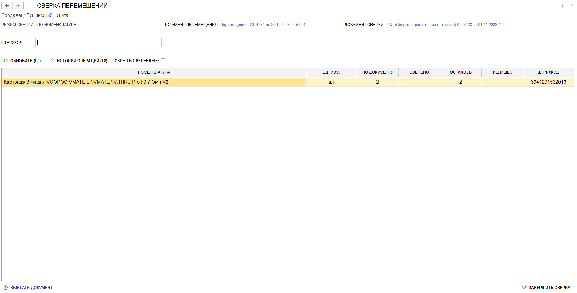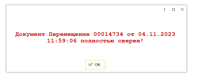 Перемещение полностью сверено. Товар можно упаковывать (согласно правилам) и отправлять получателю.