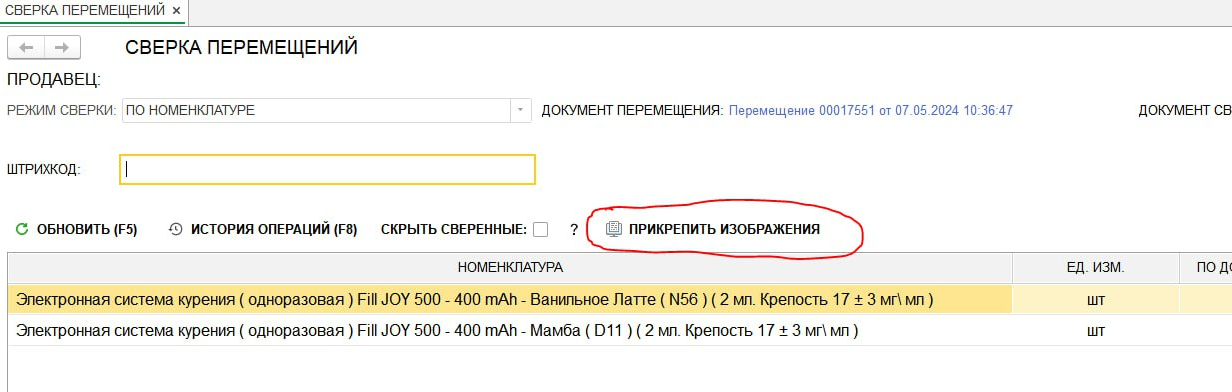 6. После согласия с правилами становиться доступной операции сканирования товара в сверку: