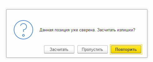 Пропустить – не добавлять отсканированное количество излишка в перемещение;