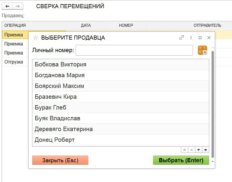 - "Приемка" – поступление товара в магазин