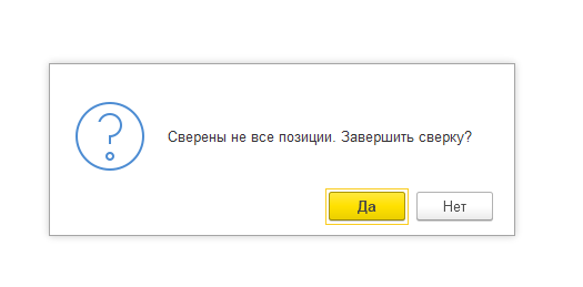 При завершении сверки, если не все позиции отсканированы, появится предупреждение