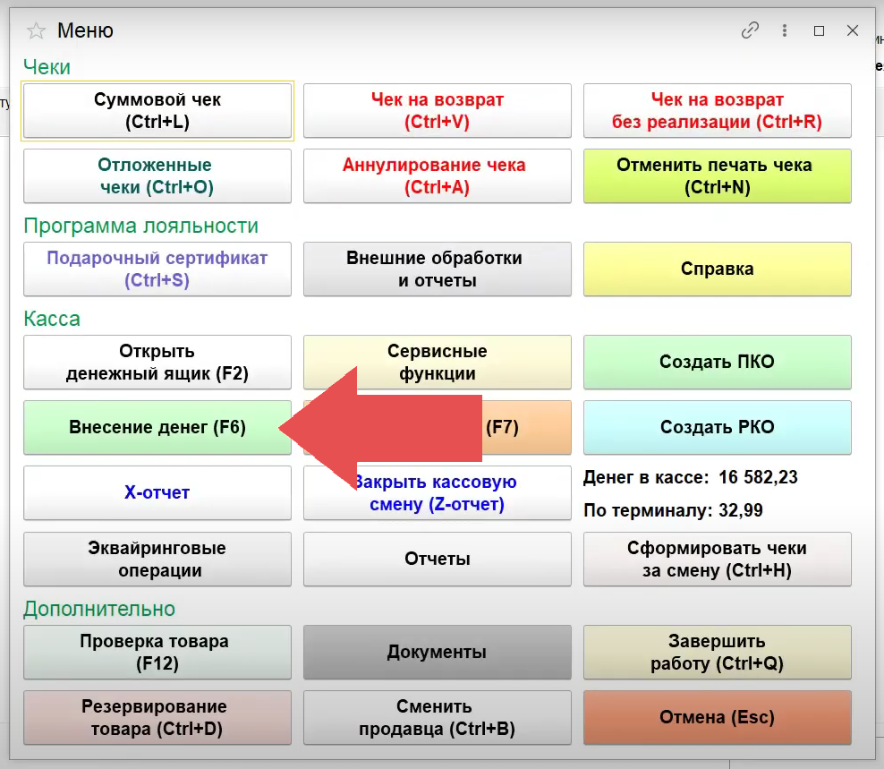 - Внесение делается автоматически или вручную, в зависимости от того, какая настройка кассы у вас стоит.